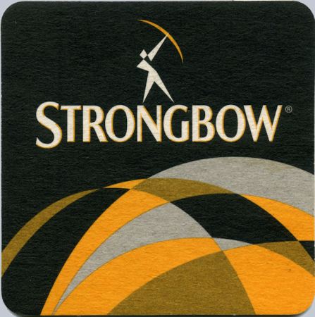 Variations - Mat measures 8.9cms, Strongbow® measures 7.3cms, large gold triangle measures 4.2cms across bottom edge, mat can also be found 9.3cms with blank reverse, Strongbow® measures 7.5cms, large gold triangle measures 5.3cms across bottom edge, mat can also be found 10.1cms, Strongbow® measures 8.3cms, large gold triangle measures 5.7cms across bottom edge